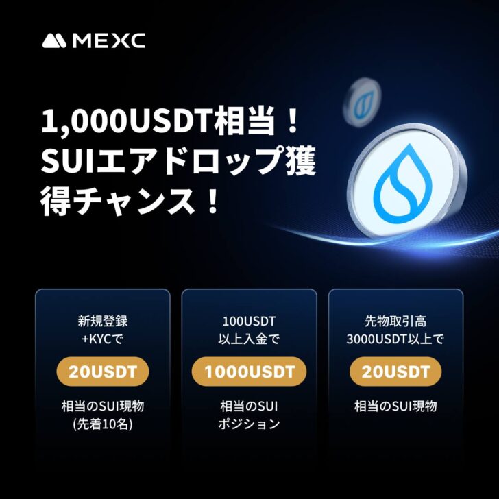 【日本限定】MEXC SUI新規特典キャンペーン!最大1,000USDT相当のSUIを獲得しよう