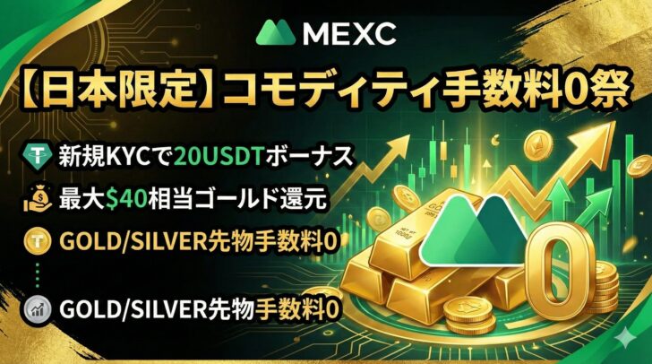 【日本限定】MEXC「コモディティ手数料0祭」開催!ゴールド還元&新規登録でボーナスを獲得しよう