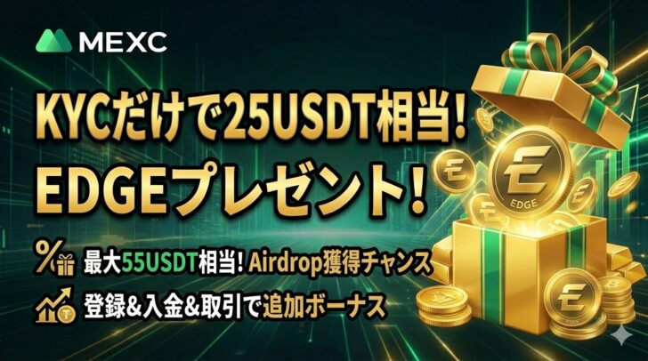 MEXC登録&KYC完了で25USDT相当の「EDGE」を無料でゲット!最大55USDT相当の特典も